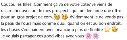 Lorsqu’elle a accepté de lâcher prise sur ce fichu client idéal, de se faire confiance et de suivre son précieux guide (le plaisir)... elle a enfin vu décoller son activité, sans plus jamais communiquer sur Instagram !