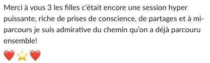 Je lis tes réponses et te fais un retour par email sous 48h (hors week-end).